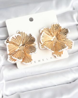 Pirinç Gold Renk Beyaz Mine Detaylı Lotus Kadın Küpe