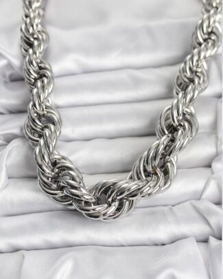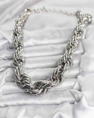 Pirinç Gümüş Renk Sarmal Halat Model Kadın Kolye