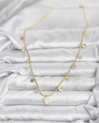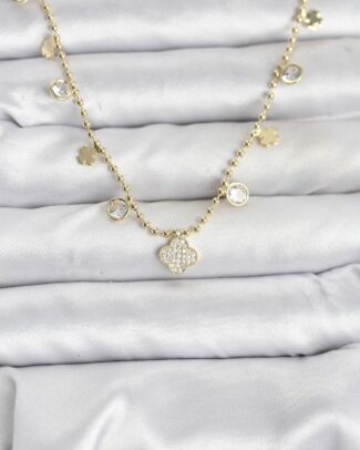 Pirinç Gold Renk Yonca Model Kadın Kolye