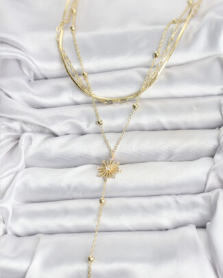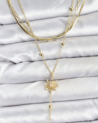 Pirinç Gold Renk Zirkon Taşlı Model Detaylı 3’lü Kombin Y Kadın Kolye