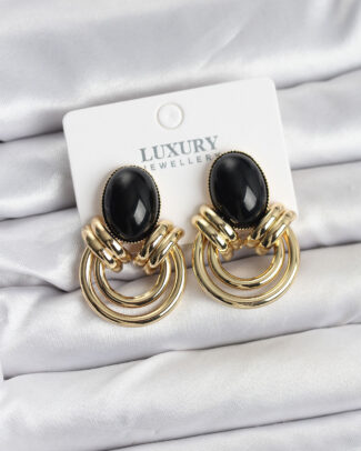 Pirinç Gold Renk Siyah Taşlı Vintage Kadın Küpe