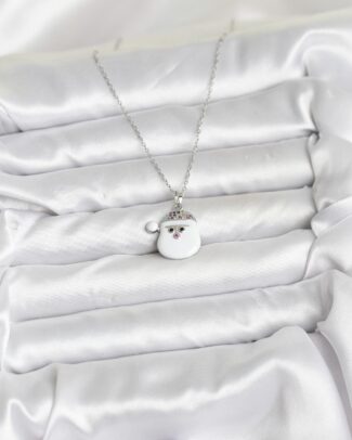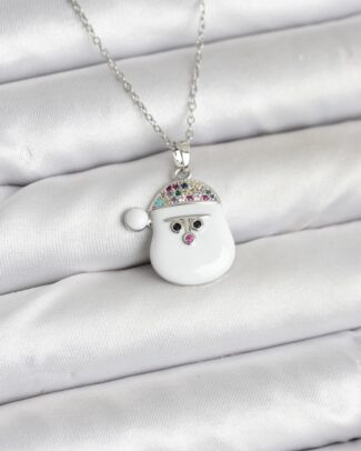 316L Çelik Zincir Gümüş Renk Şapkalı Kardan Adam Kafası Model Yılbaşı Temalı Kadın Kolye