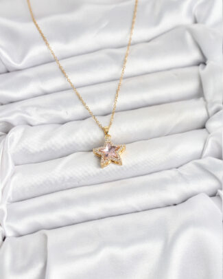 316L Çelik Zincir Pembe Taşlı Yıldız Model Kadın Kolye