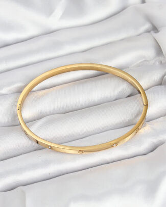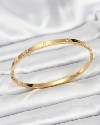 316L Çelik Gold Renk Zirkon Taşlı 65 mm İnce Kadın Kelepçe Bileklik