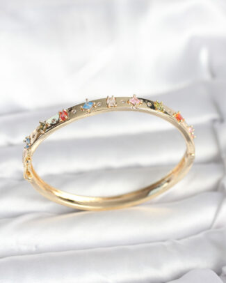 Pirinç Gümüş Renk Renkli Yıldız Charmlı Kadın Bileklik