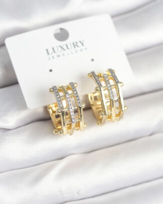 Pirinç Gold Renk Taşlı Halka Kadın Küpe