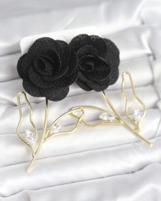 Pirinç Gold Renk Siyah Gül Model Kadın Küpe