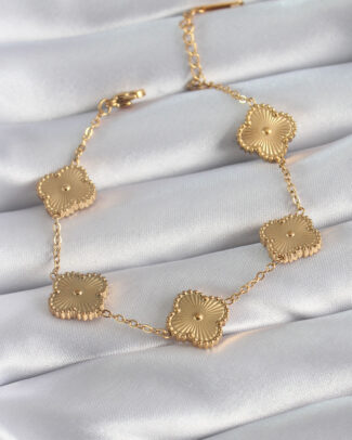 316L Çelik Gold Renk Yonca Model İşleme Detay Kadın Bileklik