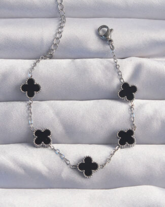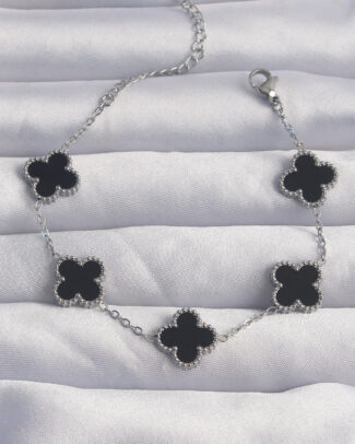 316L Çelik Gümüş Renk Siyah Mineli Yonca Bileklik