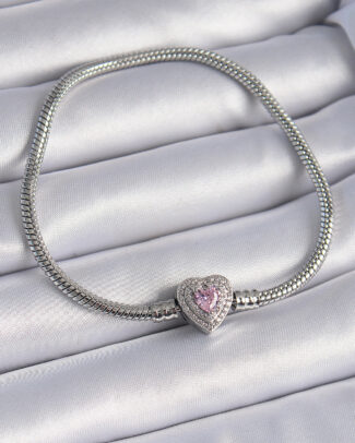 Pirinç Zirkon Taşlı Kalp Figür Charm Model Kadın Bileklik