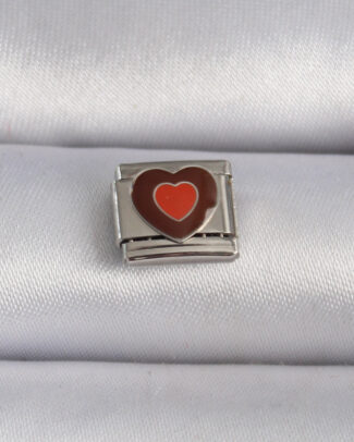 316L Çelik Gümüş Renk Kahverengi Kalp İşlemeli Nomination Charm