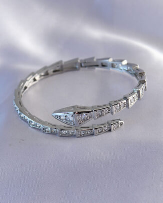 VIP Seri Yılan Model Gümüş Renk Kadın Kelepçe Bileklik