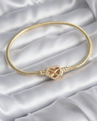 Pirinç Gold Renk Zirkon Taşlı Kalp Sonsuzluk Model Charm Kadın Bileklik