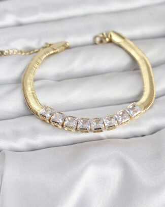 316L Çelik Gold Renk Kare Zirkon Taşlı Yılan Zincirli Kadın Bileklik