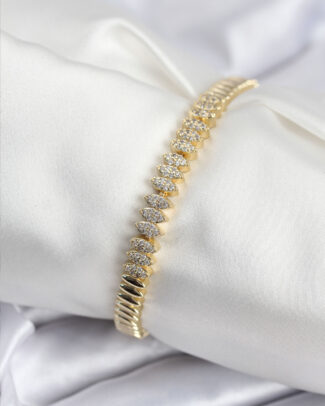 Pirinç VIP Seri Gold Renk Zirkon Taşlı Arpa Model Kadın Bileklik