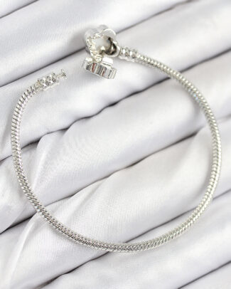 Pirinç Charm Zirkon Taşlı Kalp Model Gümüş Renk Kadın Bileklik