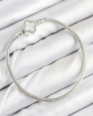Pirinç Charm Zirkon Taşlı Yonca Model Gümüş Renk Kadın Bileklik