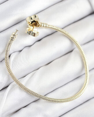 Pirinç Zirkon Taşlı Boncuk Model Ezme Zincir Gold Renk Kadın Bileklik