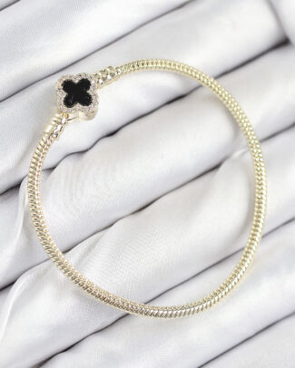 Pirinç Charm Zirkon Taşlı Yonca Model Gold Renk Kadın Bileklik