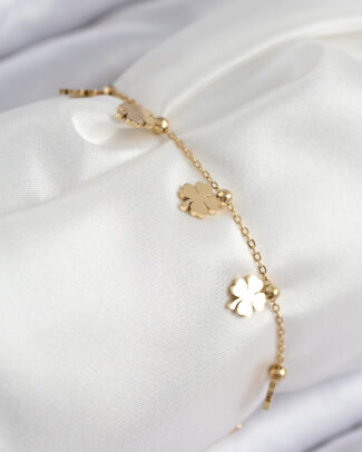 316L Çelik Sıralı Yonca Model Gold Renk Kadın Bileklik