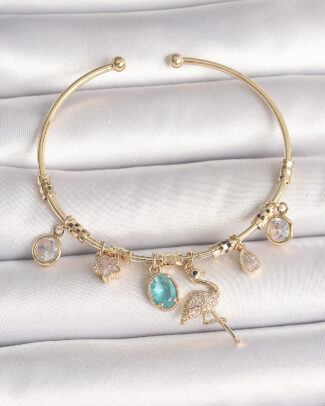 Pirinç Gold Renk Zirkon Taşlı Sallantı Filamingo Figür Charm Kadın Bileklik