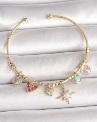 Pirinç Mix Renk Zirkon Taşlı Kalp Model VIP Seri Kadın Bileklik
