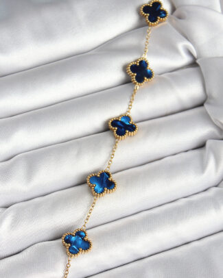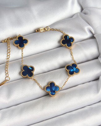 316L Çelik Sedefli Lacivert Gold Renk Yonca Kadın Bileklik