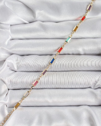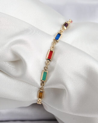 Pirinç Gold Renk Karışık Renkli Kare Zirkon Taşlı Kadın Bileklik