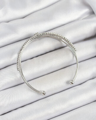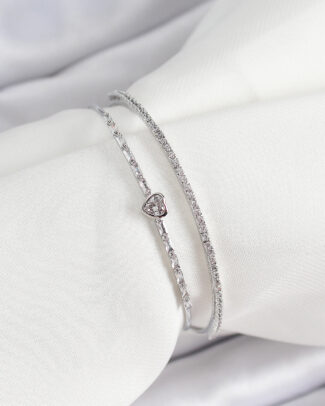 Pirinç Gümüş Renk Zirkon Taşlı Kalp Detaylı Kadın Bileklik