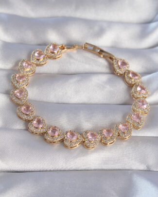 Vip Seri Pirinç Gold Renk Pembe Zirkon Taşlı Kalp Tasarımlı Bileklik