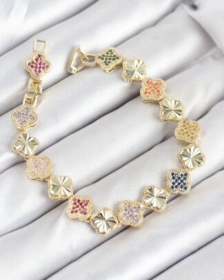 Pirinç VIP Seri Yonca Zirkon Taşlı Kadın Bileklik