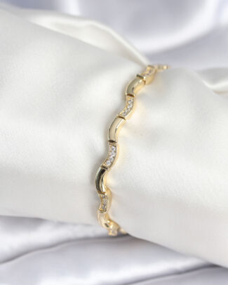 Pirinç Zirkon Taşlı Su Yolu Model Gold Renk Kadın Bileklik