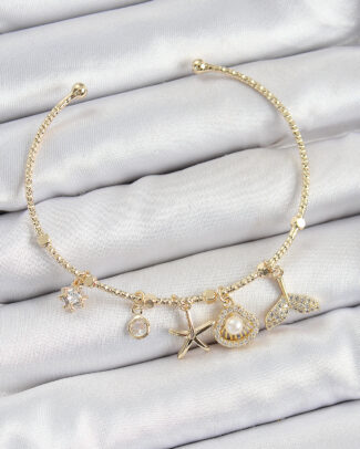 Pirinç Zirkon Taşlı İstiridye Ve Deniz Yıldızı Model Gold Renk Charm Bileklik