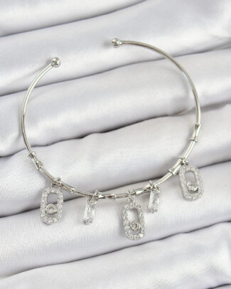 Pirinç Zirkon Taşlı Dikdörtgen Model Gümüş Renk Charm Bileklik