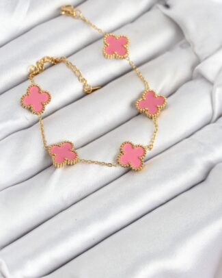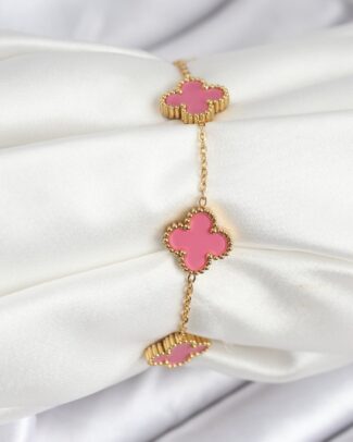 316L Çelik Gold Zincir Pembe Yonca Renk Bileklik