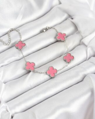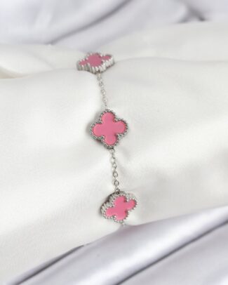316L Çelik Gümüş Zincir Pembe Renk Yonca Bileklik