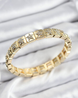 Pirinç Zirkon Taşlı Yıldız Model Gold Renk Lastikli Kadın Bileklik