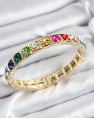 Pirinç Karışık Zirkon Taşlı Dikdörtgen Model Gold Renk Lastikli Kadın Bileklik