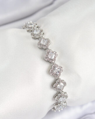Pirinç Zirkon Taşlı Yonca Baget Model Gümüş Renk VIP Seri Kadın Bileklik