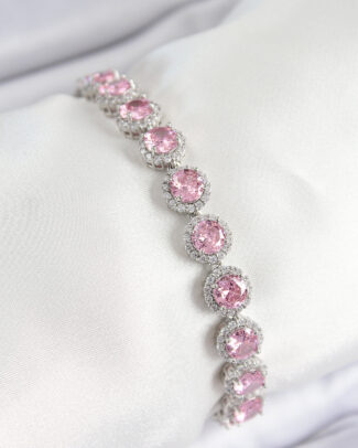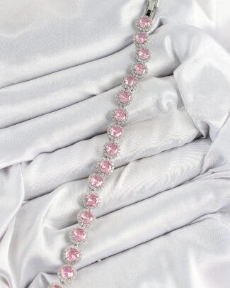 Pirinç Pembe Zirkon Taşlı Daire Baget Model Gümüş Renk VIP Seri Kadın Bileklik