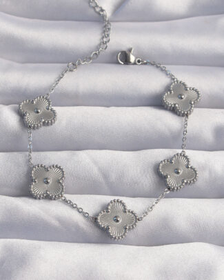 316L Çelik Gümüş Renk Motifli Yonca Bileklik