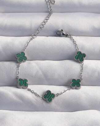 316L Çelik Baby Boy Gümüş Renk Çizgili Yeşil Mineli Yonca Bileklik