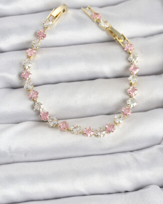 Pembe ve Beyaz Zirkon Taşlı Gold Renk Su Yolu Kadın Bileklik