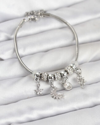 Pirinç Gümüş Renk Ay Charm Model Charmlı Kadın Bileklik