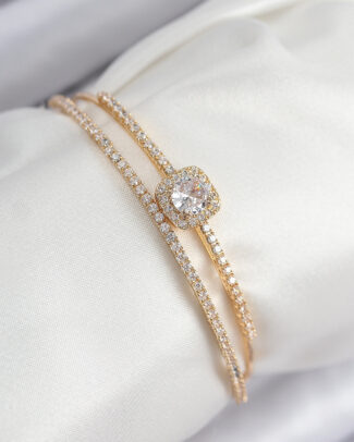 Pirinç Zirkon Taşlı Pırlanta Model Gold Renk Kadın Bileklik