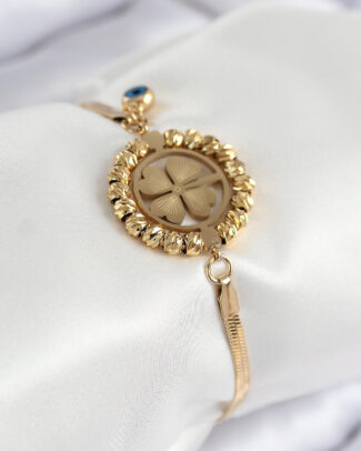316L Çelik Nazar Boncuk Detaylı Yonca Model İtalyan Zincir Gold Renk Kadın Bileklik