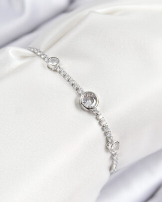 Pirinç Zirkon Taşlı Su Yolu Model Gümüş Renk Asansörlü Kadın Bileklik