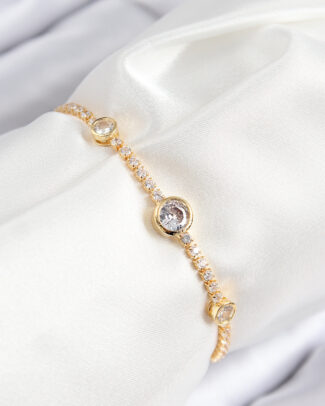 Pirinç Zirkon Taşlı Damla Model Gold Renk Asansörlü Kadın Bileklik