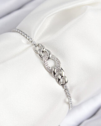 Pirinç Zirkon Taşlı Zincir Model Gümüş Renk Asansörlü Kadın Bileklik