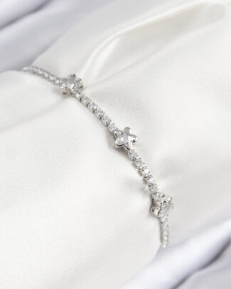 Pirinç Zirkon Taşlı Yıldız Model Gümüş Renk Asansörlü Kadın Bileklik